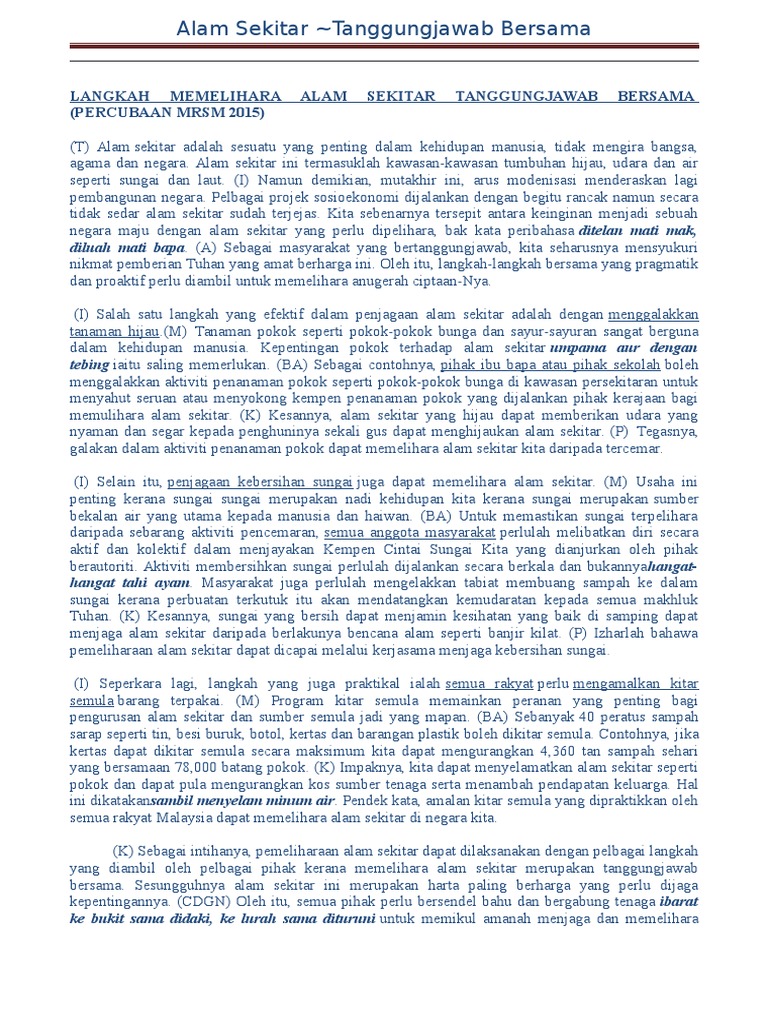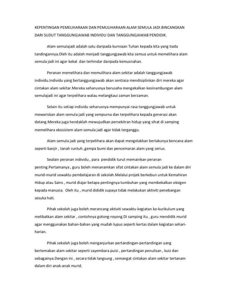 Karangan Cara Memelihara Alam Sekitar Pdf